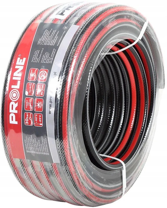 Wąż ogrodowy marki Proline z serii CARBON PLUS to czterowarstwowy produkt wykonany z elastycznego PCW na bazie suspensyjnego polichlorku winylu oraz innych komponentów, dodatkowo wzmocniony obwojem tekstylnym.